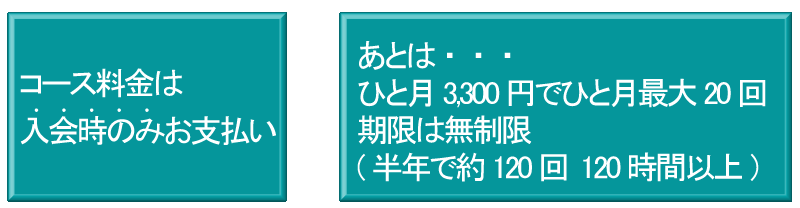 山形パソコン教室は、コース料金が初回のみのお支払い、あとは月々3,300円(税込)の会費だけです。
